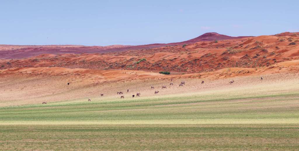 And then, rarely, the desert becomes something else entirely. When rain falls—sometimes just once in a decade—it transforms the valley floor. Dry riverbeds pulse to life, and Sossusvlei briefly becomes a mirror, holding still water between its rust-red walls.
