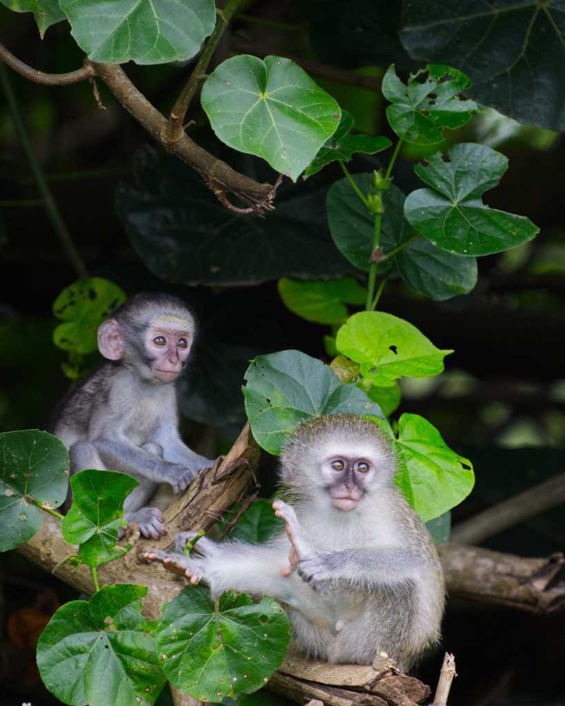 In the gentle dusk of southern Africa, the vervet monkeys close out another day—social, agile, curious, watchful, wild. Always wild.