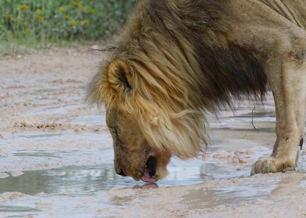 The males of Etosha are figures of weight and presence. Broad-shouldered, heavy with mane, they carry themselves with a gravity that no other creature questions. In the rainy season, their movements are slower, measured, but no less purposeful. They are not hunters in the daily sense. They move with long, deliberate strides through the soaked grasslands, pausing to scent the air, pausing again to rest in the shade of acacias. The rains give them cover and coolness, but also challenge—rivals can move more easily now, and territory lines blur when herds scatter into the abundance. Their roars roll across the damp air like thunder, claiming the land as much as warning others away.