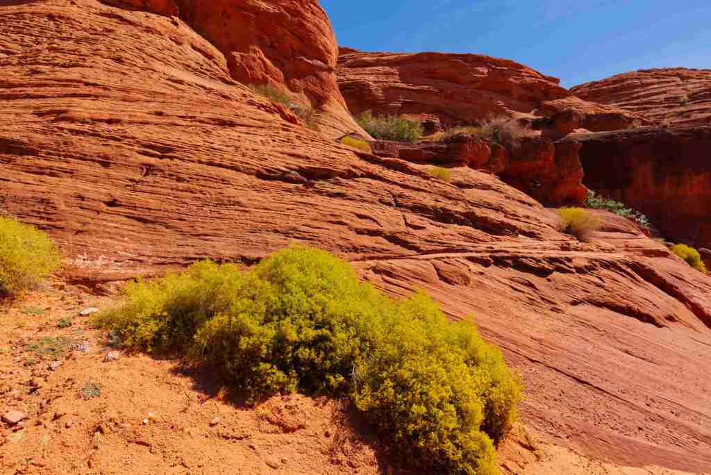 The walls are also textured with fine horizontal striations, evidence of the sandstone’s layered formation millions of years ago. What flash floods shaped into sculpture was once ancient desert dune.