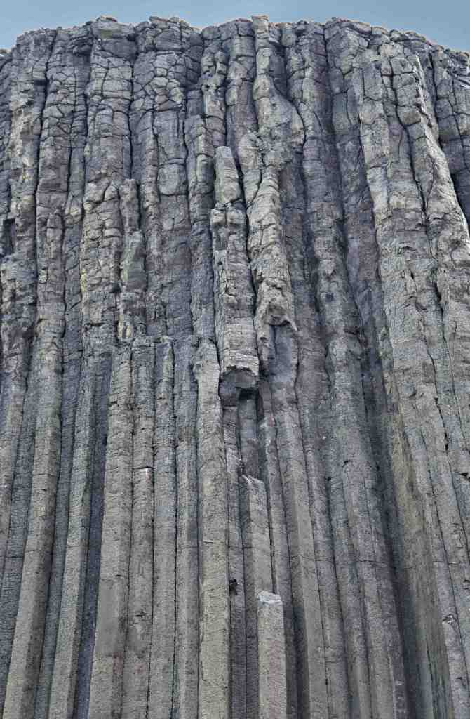 Devil’s Tower rises abruptly from rolling prairie and pine forest, its sides furrowed with long vertical grooves. These grooves are columns of igneous rock, formed as molten magma cooled and contracted deep underground some 50 million years ago. Over time, softer surrounding rock eroded away, leaving the harder columns exposed as a massive, solitary butte.
