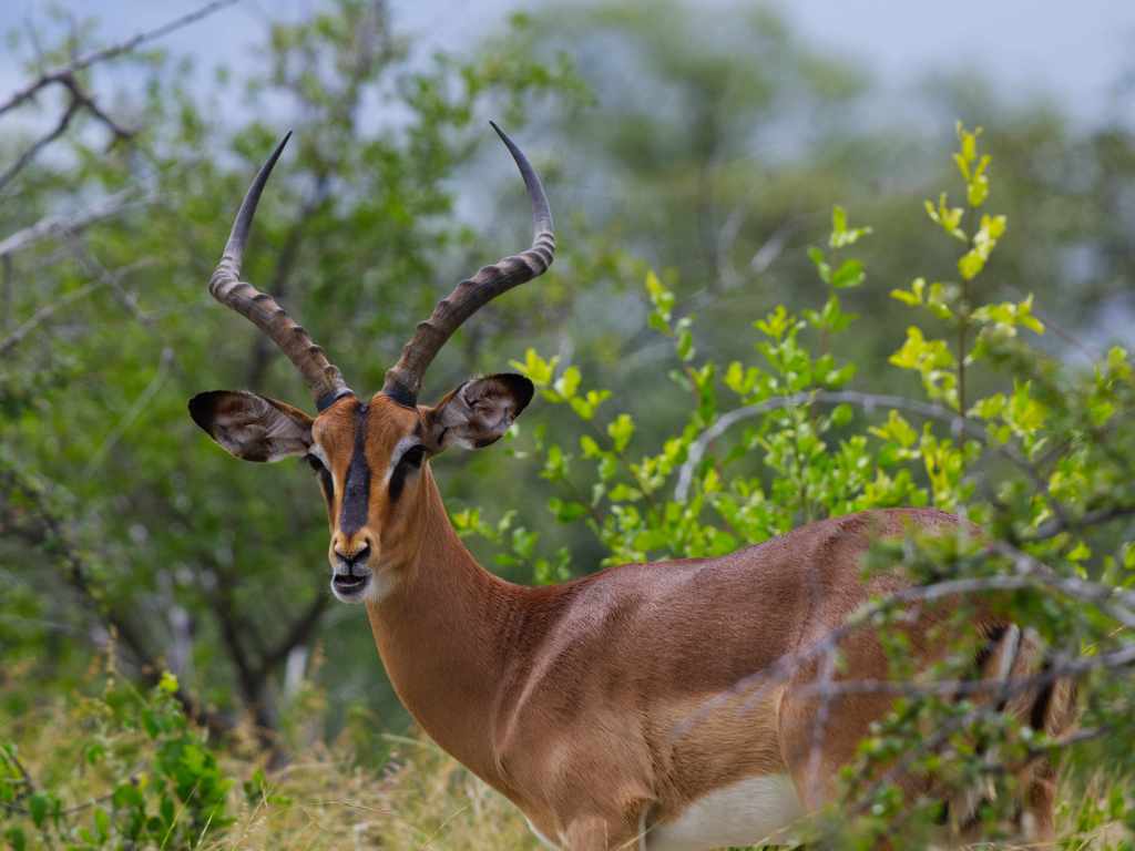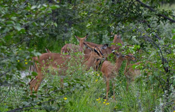 The black-faced impala lives as much by rhythm as by instinct. Mornings begin with movement—herds drifting out into the savanna to graze on fresh grass and browse on acacia leaves, their large eyes and swiveling ears ever-alert for danger. Midday brings heat, and with it, stillness. They seek the shade of mopane trees, chewing slowly, waiting for the long hours to soften into evening.