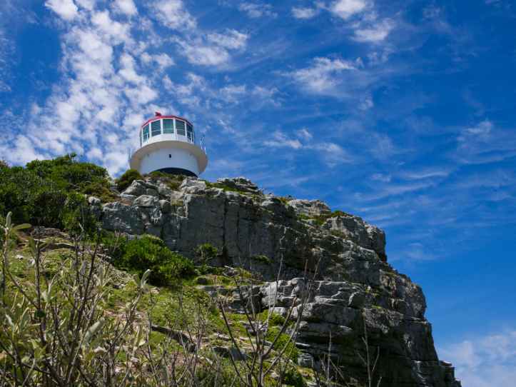 The old lighthouse, perched high on the promontory, is Cape Point’s crown. Built in 1859, it once guided ships along this treacherous coast, though it proved too high—its light often swallowed by mist while storms raged unseen below. Today it stands as a monument, its white walls and red roof stark against the sky.