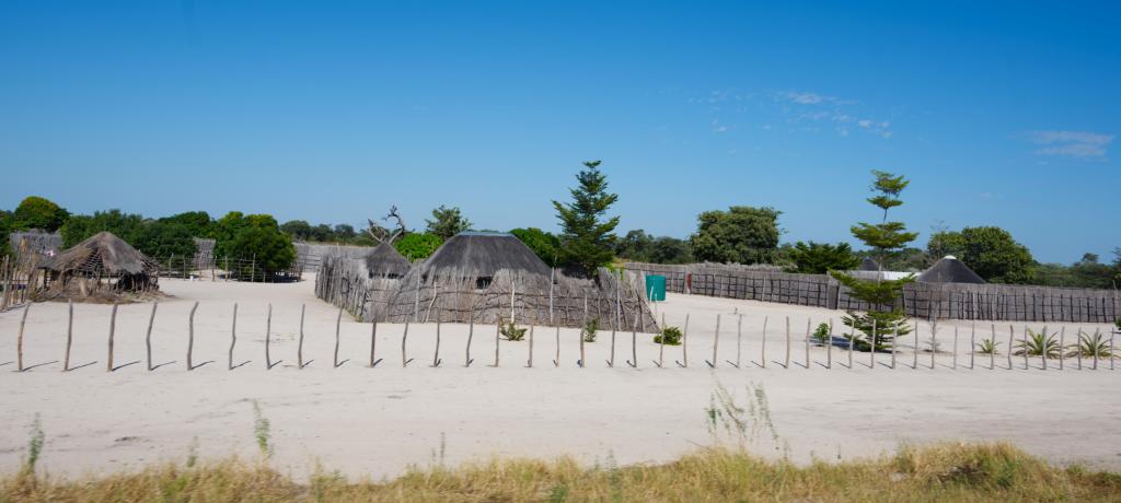 In many villages, the years since independence have brought a slow, steady transformation along the road. The traditional thatched huts — round, low, and built from reed and mud — still cluster beneath the acacia trees, their golden roofs catching the late light.