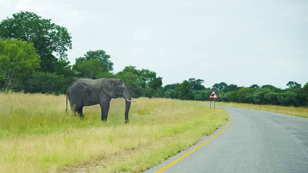 As the miles unfold, the rhythm of the road becomes steady, almost meditative. The world moves at its own quiet pace — a woman walking with a basket balanced on her head, a child waving from the shade of a tree, a man on a bicycle gliding along the edge of the tarmac. The villages come and go, scattered and self-contained, their thatched roofs and tin walls catching the light as you pass. Between them lie stretches of parkland, where the bush grows thick again and the land feels untamed. In these places, the wild has returned — elephant tracks pressed deep into the sand, antelope grazing at the edge of the trees, the faint movement of life reclaiming old ground.