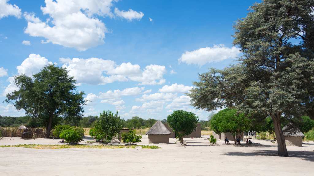 For travelers coming from the arid vastness of the Namib Desert or the baked red soils of the Kalahari, the Caprivi feels like another world entirely. Trees begin to gather close along the road — mopane, acacia, and jackalberry — and the smell of river mud replaces the dust. Cattle and goats graze in open clearings. Every few miles, a cluster of houses appears: thatched huts set back from the verge, their reed fences marking the edge of family yards. The road itself remains mostly straight, unhurried, but around it the land begins to show signs of motion — people walking with bundles balanced on their heads, a bicycle leaning in the shade, a herd of goats crossing one by one. It is the first sign that the long silence of the west is giving way to the quiet pulse of life that defines the Caprivi.