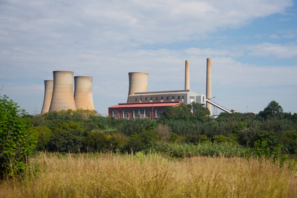 Soon after, small towns emerge in sequence, rooftops clustered, roads crossing the rails with quiet familiarity. The train passes through without pause, threading together wilderness, work, and settlement as it continues its steady approach toward Pretoria. As the train draws closer to Pretoria, the landscape takes on an industrial cadence. Warehouses and processing plants line sections of the track, their long roofs and steel frameworks stretching toward the horizon. A power generation station rises nearby, its stacks sending faint plumes into the sky, a reminder of the city’s infrastructure humming beyond the hills. The air feels heavier here, shaped by work and movement rather than open land, yet the transition is gradual, almost respectful. The train moves steadily through this zone of industry, marking the final shift from countryside to city as Pretoria gathers ahead.