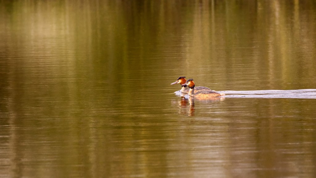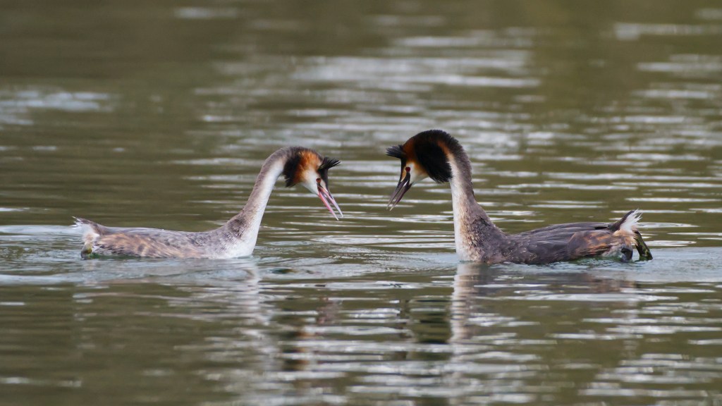 If you happen to be near one of the lakes in early spring, you might witness one of the most celebrated courtship displays in the bird world. The great crested grebe’s mating ritual is not just behavior; it is spectacle. Pairs face each other and rise in the water, bodies aligned, then settle back down. This sequence repeats. Between repetitions, weed is gathered from below and exchanged at the surface.